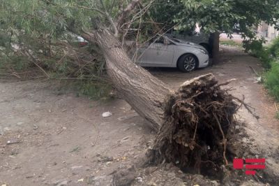 Güclü külək nəticəsində Elmirli Nicat Bəhman oğluna məxsus "Hyundai" markalı minik avtomobilinin üstünə ağac aşıb.