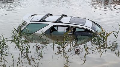 Fotolardan göründüyü kimi, bir neçə maşın suya qərq olub, "leksus" markalı bir cip isə demək olar tamamilə batıb.