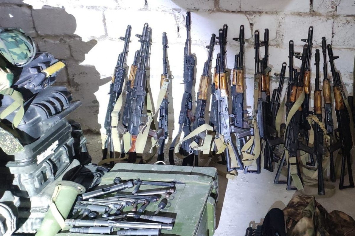 DİN xəbər verir ki, polis əməkdaşlarının keçirdikləri tədbirlərlə Xankəndi şəhərində yerləşən uşaq bağçasının zirzəmisindən 1 ədəd dron, 1 ədəd dron üçün tripot, 29 ədəd müxtəlif markalı avtomat silahı, 4 tapança, 27 tüfəng, 416 ədəd qumbara, 113 alışdırıcı, 113 ədəd partlayıcı, 1178 patron darağı, 8508 ədəd mərmi, 24320 ədəd müxtəlif çaplı patron, 30 ədəd kapsul, 3 ədəd optik nişangah, 10 gecəgörmə cihazı, 50 ədəd rabitə qurğusu, 34 süngü-bıçaq, 57 ədəd əleyhqaz, 4 binokl, 4 penal dəsti və digər sursatlar aşkar olunaraq götürülüb.