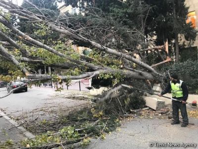 Trend-in hadisə yerində olan əməkdaşının verdiyi məlumata görə, hadisə Daxili İşlər Nazirliyinin Baş Mühafizə İdarəsinin yaxınlığında baş verib. İrigövdəli ağac yaxınlıqdakı restoranın üzərinə aşıb.