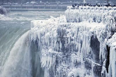 Niaqara şəlaləsi ABŞ-ın şimal-şərqindəki güclü şaxtalar səbəbindən donub.