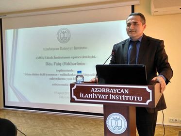 Azərbaycan İlahiyyat İnstitutunda (Aİİ) 05 aprel 2019-cu il tarixdə AMEA Fəlsəfə İnstitutunun aparıcı elmi işçisi, dosent Faiq Ələkbərlinin təqdimatında "İslam dininə üçlü yanaşma –mühafizəkarlıq, dünyəvilik və millilik anlayışlarına yeni baxış" mövzusunda seminar təşkil olunub.