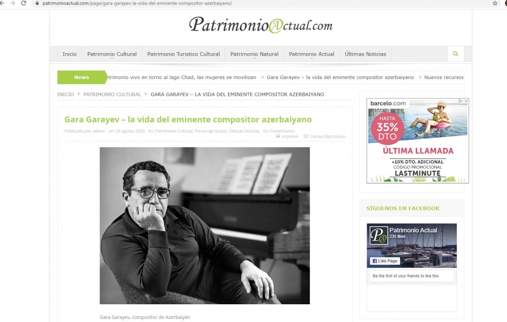 İspaniyanın nüfuzlu "Patrimonio Actual" internet portalında Azərbaycan mədəniyyətinin görkəmli nümayəndəsi, görkəmli bəstəkar, tanınmış alim-pedaqoq və ictimai xadim, akademik Qara Qarayevin həyat və yaradıcılığından bəhs edən geniş məqalə dərc olunub.