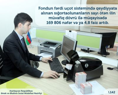 Mediainfo.az-a Əmək və əhalinin sosial müdafiəsi nazirliyindən verilən xəbərə görə, fondun fərdi uçot sistemində qeydiyyata alınan sığortaolunanların sayı ötən ilin müvafiq dövrü ilə müqayisədə 169 806 nəfər və ya 4,8 faiz artıb.