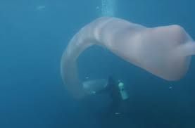 Yeni Zelandiyada iki dayver nəhəng soxulcanı xatırladan qeyri-adi dəniz canlısını videoya çəkib.