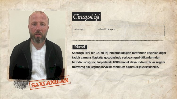 Qızıl dükanından min manat dəyərində üzük və sırğanı oğurlayan, əvvəllər məhkum olunmuş Fərhad Hacıyevdir.