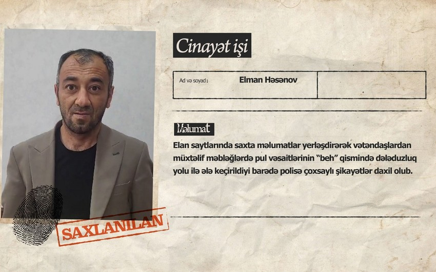 Elan saytlarında saxta məlumatlar yerləşdirərək vətəndaşlardan müxtəlif məbləğlərdə pul vəsaitlərinin “beh” qismində dələduzluq yolu ilə ələ keçirildiyi barədə polisə çoxsaylı şikayətlər daxil olub.