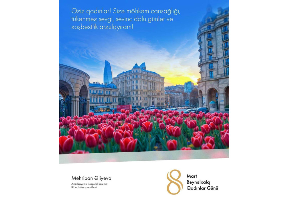 Azərbaycan Respublikasının Birinci vitse-prezidenti Mehriban Əliyeva 8 Mart - Beynəlxalq Qadınlar Günü münasibətilə rəsmi instaqram səhifəsində paylaşım edib.