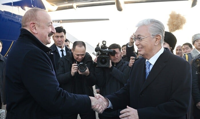 Dövlət başçısını Qazaxıstan Respublikasının Prezidenti Qasım-Jomart Tokayev qarşılayıb.