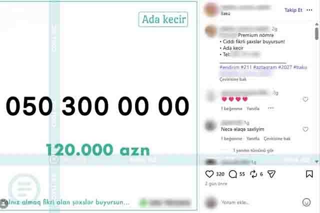 Azerbaycanpolisi.az “Oxu.Az”-ın məlumatına istinadla xəbər verir ki, bu barədə "Instagram" platformasındakı mobil nömrə satışı səhifəsində elan paylaşılıb.