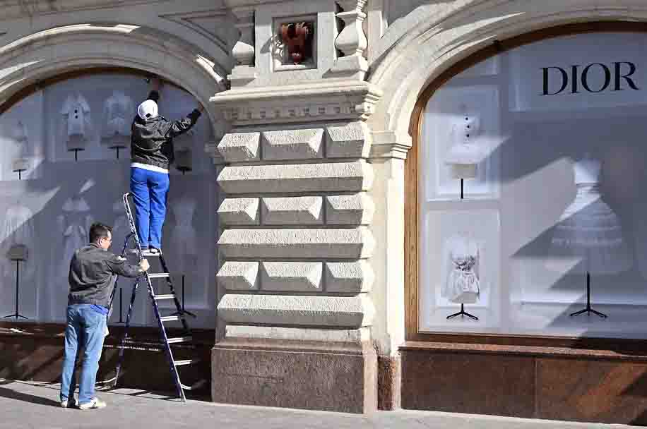 Mart 2022-ci ildə brend Ukraynadakı genişmiqyaslı müharibə səbəbindən Rusiyada fəaliyyətini dayandırmaq qərarına gəlib. 2023-cü ilə qədər brendin doqquz obyekti qalmışdı, onlardan səkkizi paytaxtda, biri isə Peterburqda yerləşirdi. 2024-cü ilə qədər isə yalnız dörd nöqtə qalmışdı. Bununla belə, 2024-cü ildə Christian Dior Rusiyada öz ticarət nişanının qeydiyyatını 2034-cü ilə qədər yeniləyib.