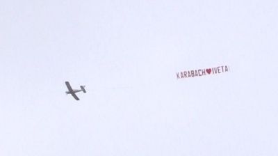"Karabach-Iveta" sözləri yazılan plakat yerdən aydın görünüb.