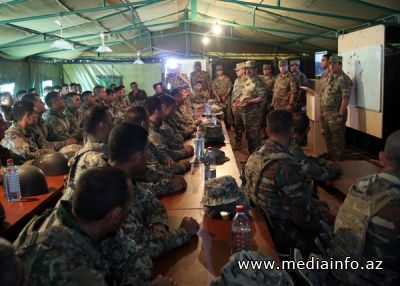 Müdafiə Nazirliyinin mətbuat xidmətindən KİV-ə verilən məlumata görə, hərbi qulluqçuların döyüş, eləcə də atəş və taktiki hazırlıqlarının yüksəldilməsi məqsədilə nəzərdə tutulan təlim poliqonuna gələn nazir ərazidə cəbhə xəttindəki vəziyyətin modelləşdirilməsi, təlimlərin real döyüş şəraitinə uyğun keçirilməsi və digər praktiki məşqlərlə bağlı görülən işlərlə maraqlanıb. Müdafiə naziri ərazidəki komanda məntəqəsində olub, çöl şəraitində yaradılmış düşərgədə təlim keçən şəxsi heyətlə görüşüb, onların peşəkarlıq və döyüş qabiliyyətlərinin artırılması ilə bağlı müvafiq göstəriş və tapşırıqlarını verib.