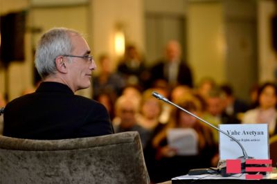 Vahe Avetyan çıxışında bir həftədir Azərbaycanda olduğunu söyləyib: "Qonaqpərvərliyinizə görə təşəkkür edirəm. Mən bura həm yazısı, həm də vətəndaş kimi gəlmişəm. Bir neçə məcburi köçkünlə görüşmüşəm, Xocalıabidəsini ziyarət etmişəm. Xocalı abidəsinin qarşısında, günahsız insanların qarşısında baş əymişəm. Bu forumun nəticəsində siyasətçilər, QHT rəhbərləri, fəallar bir qərara gələ bilərlər. Mənim burada uzun illərdir ki, dostluq etdiyim şəxslər var. Bu məsələni biz həll edə bilərik, çünki indiki gənclərdə qəzəb var. İlk növbədə mədəni münasibətlər həll olunmalıdır. Bizə beynəlxalq təşkilatlar lazım deyil, özümüz öz problemlərimizi həll edə bilərik. Sülh niyyətində olan yazıçılar, QHT-lər arasında münasibətlər mütləq qurulmalıdır. Bu, mənim sonuncu səfərim olmayacaq. Mən Xocalıdan olan insanlarla görüşdüm və çox təsirləndim. Sülhün əldə olunması üçün qarşılıqlı səfərlərin tez-tez həyata keçirilməsinə ehtiyac var".