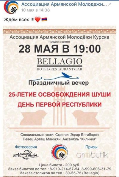 Qeyd edək ki, bir neçə gündür Kurskda fəaliyyət göstərən erməni gənclər təşkilatları mayın 28-də "Şuşanın azad olunmasının 25 illiyi" adı ilə təxribat xarakterli aksiya və konsertin keçirilməsi elanını veriblər, rəsmi icazə aldıqlarını bəyan ediblər. Rusiyada yaşayan azərbaycanlılar bununla bağlı ölkənin müvafiq qurumlarına şikayət ediblər.
