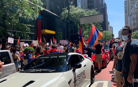 Yüzlərlə erməni Nyu Yorkun Manhetten əyalətinin mərkəzi küçələrindən olan "3th Avenue" prospektinə toplaşıblar. Onların bəzilərinin əllərində dəyənəklər də olub. Ərazidə uzun müddət hay-küy salmağa çalışan ermənilərə yerli ictimayyəti məhəl qoymayıb və eyni zamanda kütləvi aksiya heç bir yerli media orqanında yer almayıb.