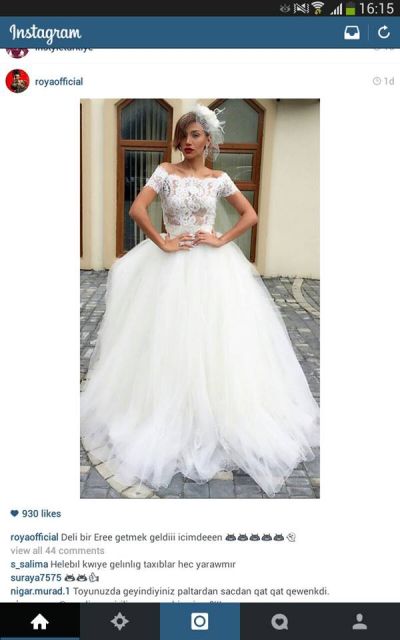 Müğənni Röya Ayxanın sosial şəbəkədə paylaşdığı şəkil ilə hər kəsi təəccübləndirib. Gəlinlik libasında fotosunu paylaşan ifaçı "dəli bir ərə getmək gəldi içimdən" şərhini yazıb.