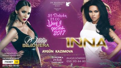 Xəbər verdiyimiz kimi, dünyaca məşhur müğənnilər İnna və Otilia 31 dekabr Yeni il və Dünya Azərbaycanlılarının Həmrəylik günündə Bakının qonağı olacaqlar. Məlumatına görə, sənətçilər "JW Marriott Absheron" otelində konsert proqramı ilə çıxış edəcəklər. Inna və Otilia ilə yanaşı gecədə xalq artisti Aygün Kazımova, müğənni Dilarə Kazımova səhnəyə çıxacaq. Gecənin təşkilatçısı "Vəlizadə" prodakşının rəhbəri Tural Vəlizadə bildirib ki, qonaqları maraqlı sürprizlər gözləyir: