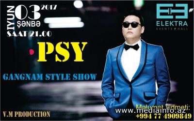 Mediainfo.az xəbər verir ki, iyunun 3-də dünyaşöhrətli musiqinin ifacısı PSY Bakıya gələcək. "Electra Events Hall"da təşkil olunacaq konsertdə PSY "Gangam Style" adlı şou-proqramla çıxış edəcək.