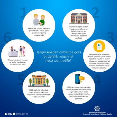 Bunun üçün həmin valideynlərin hər hansı quruma müraciət və sənəd təqdim etmələrinə artıq ehtiyac qalmayıb. Yəni doğulan uşaq üçün doğum haqqında şəhadətnamə alındığı gündən sonra Əmək və Əhalinin Sosial Müdafiəsi Nazirliyi tərəfindən Ədliyyə Nazirliyinin müvafiq informasiya sisteminə inteqrasiya şəraitində, həmin sistemdən əldə olunan məlumat əsasında müavinət e-qaydada təyin olunub.