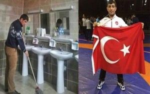 Türkiyəli eşitmə qüsurlu güləşçi Seyfullah Qaradəniz dövlət idarəsində yerləri silərək maaş alır.